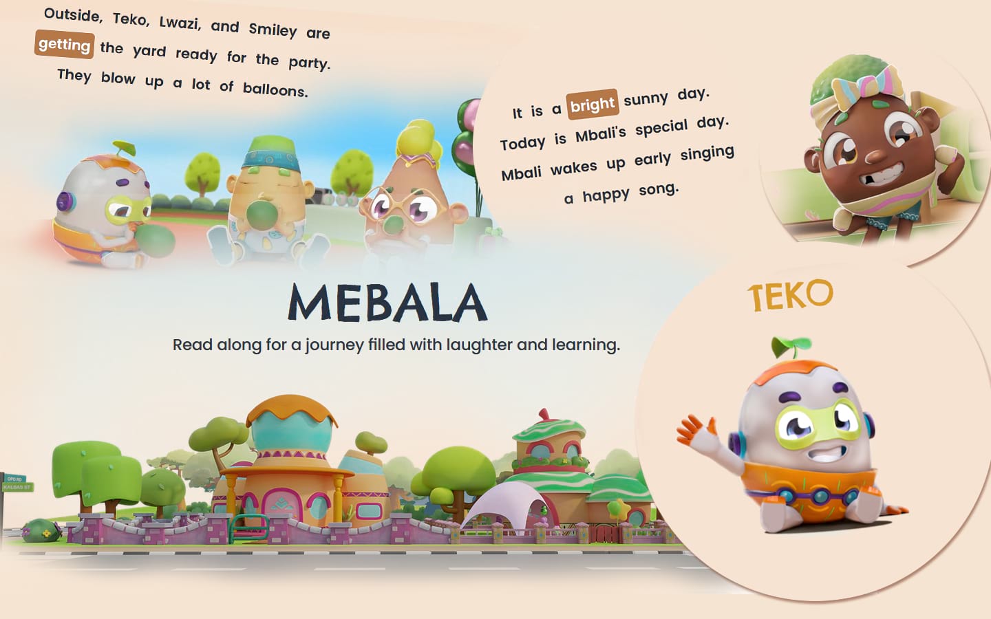 Mebala is an interactive children's storybook. You can click, listen and read along as we follow the Mebala circle of friends.